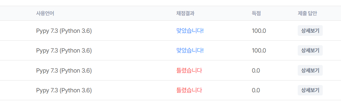 처음에 원하던 배열의 방식으로 성공은 못했다...ㅜㅜ 담에 다시 배열 도전.. C++로 풀어봐야겠당..... 쥬륵..