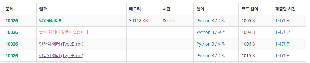 런타임 에러 나다가 맞췄다.. 여기를 바로 찾지 못하고 괜한 다른 곳에서 찾다가 시간을 날렸다.