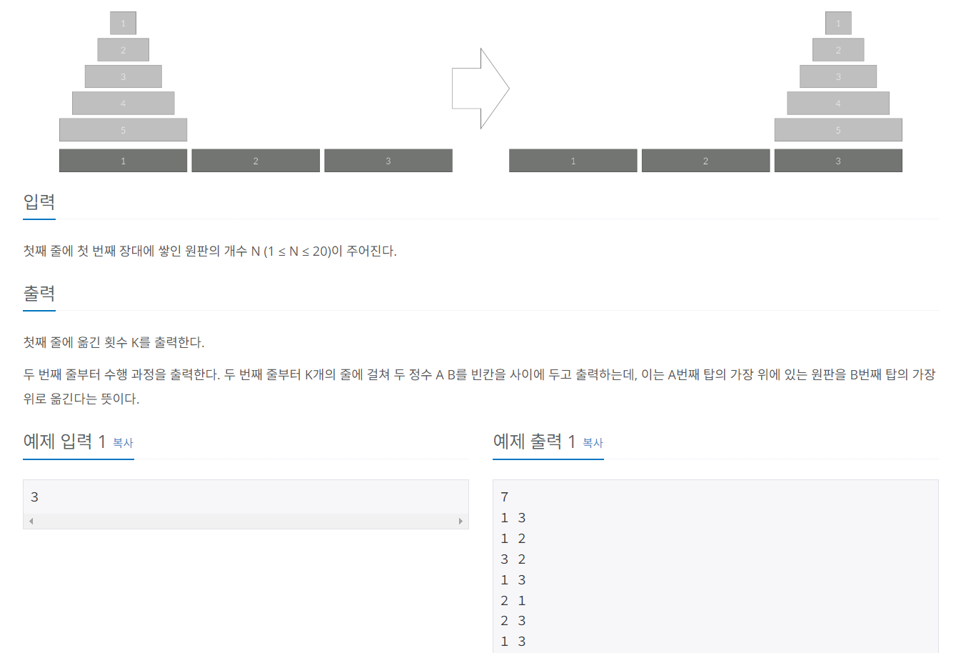 - 문제명 : 하노이 탑 이동순서