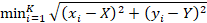 현재 K개의 좌석이 차 있고, 이 중 i번째 좌석은 (xi,yi)라고 하자. 이 상황에서 어떤 좌석 (X,Y)의 안전도 DX, Y는