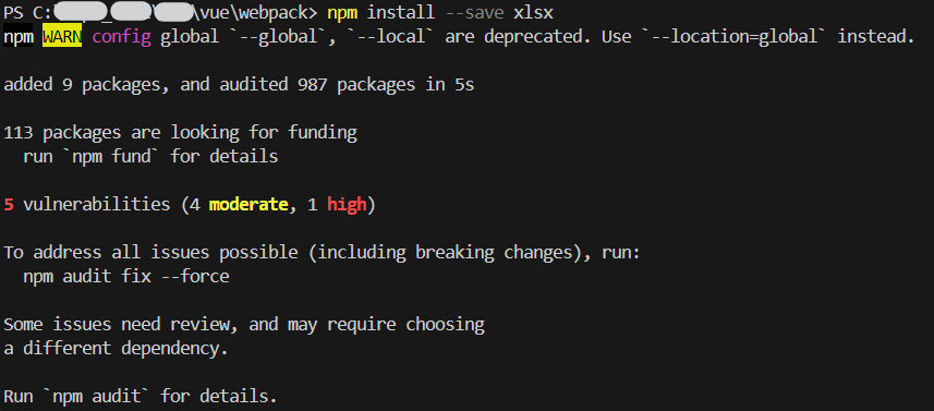 npm install --save xlsx
