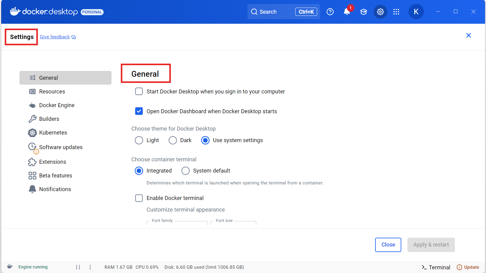 - 초기화(선택) : Docker 실행 → Settings > Reset > Reset to factory defaults