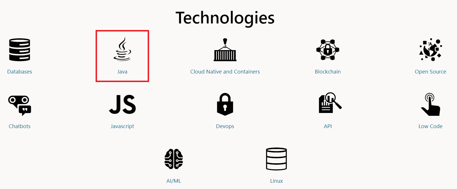 2. Developers로 들어가면 여러 Technologies가 있다. JAVA를 선택해준다 !
