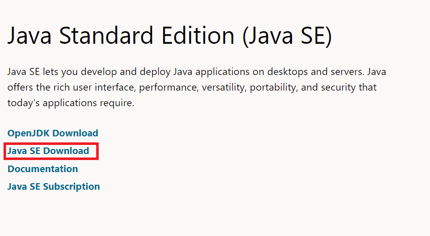 3. Java SE를 다운받기 위해 [ Java SE Download ]를 클릭한다.