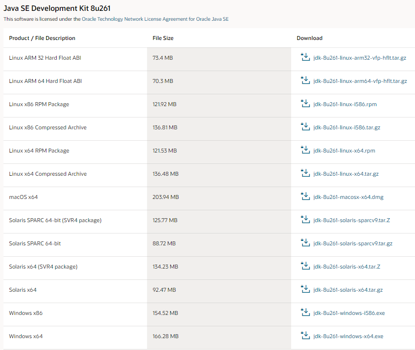 여러 버전 중에 자신이 필요한 버전을 Download해준다. 나는 지금 Java SE 8을 다운할거다.