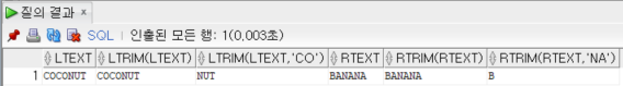 근데 RTRIM(RTEXT, 'NA')에서도 나는 결과가 'BA'가 나올 줄 알았는데 'B'만 나왔당 !