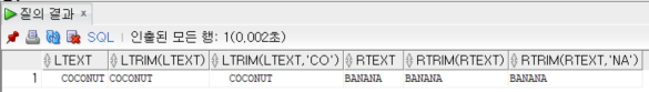 LTRIM과 RTRIM 함수 역시 왼쪽과 오른쪽의 공백을 제거할 때 사용하는 함수이다.