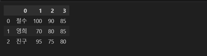 numpy와 다르게 문자형, 숫자형 다양한 자료형의 값들을 정상적으로 출력해 준다는 점을 확인할 수 있다 !