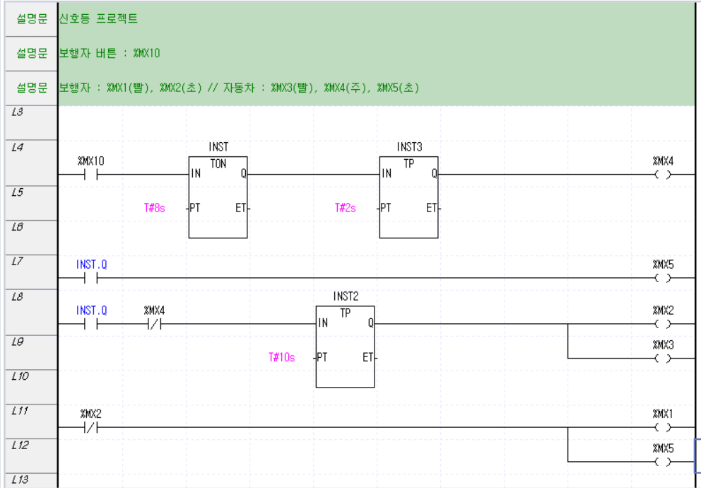 ▶ 보행자 신호등 : %MX1 (빨), %MX2 (초)