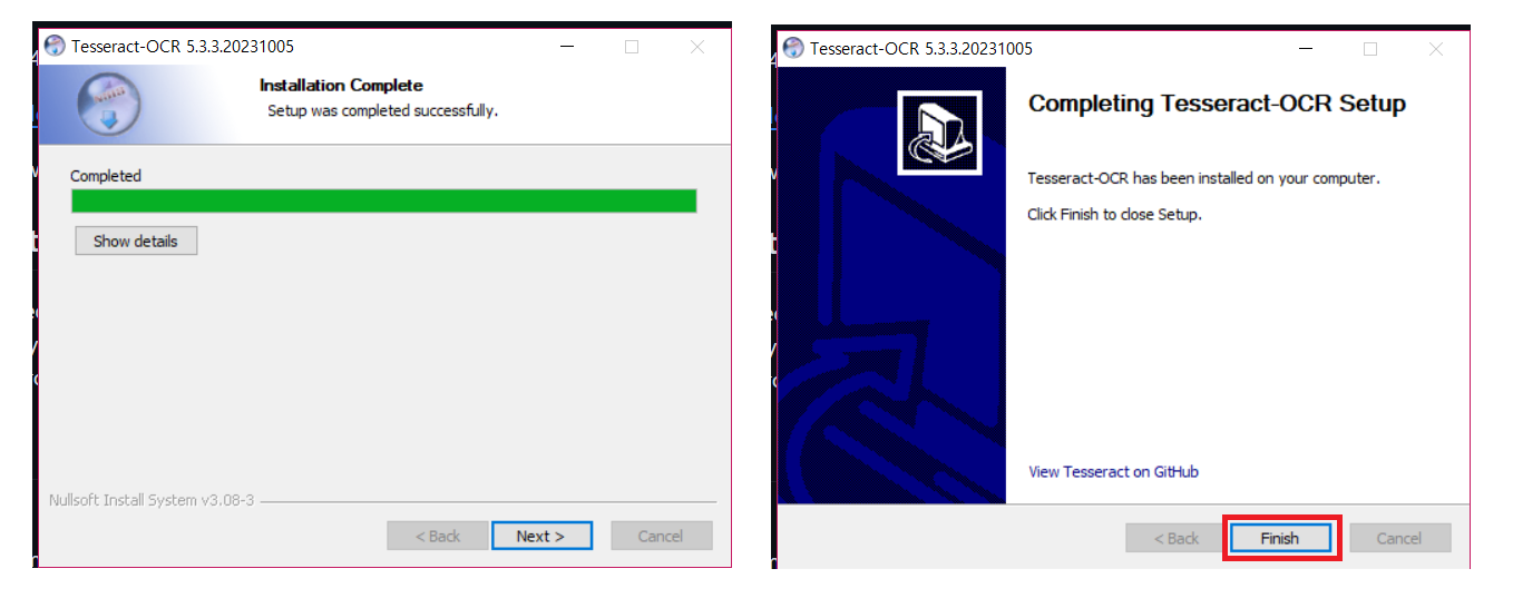 3. 마무리 단계로 Tesseract 설치를 확인합니다.