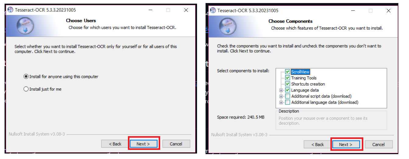 ( + ) Tesseract를 시스템 환경 변수에 추가하도록 선택합니다.