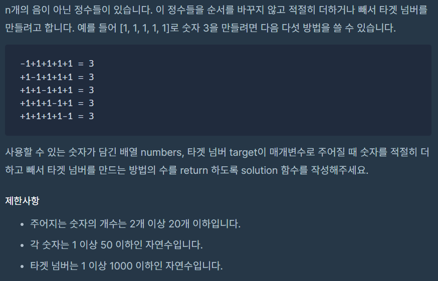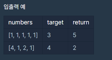 - 문제명 : 타겟 넘버 [깊이/너비 우선탐색(DFS/BFS)]